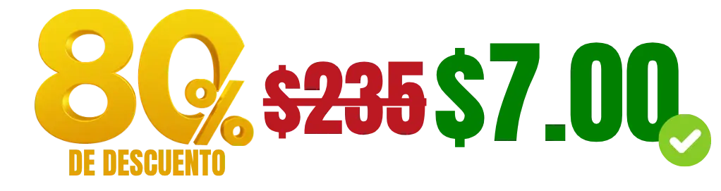 Por eso hoy quiero abrirte la puerta y ponértelo más fácil, si hoy decides tomar ACCIÓN voy a darte un 80% de DESCUENTO, quedándote en tan solo 7.00 DÓLARES.