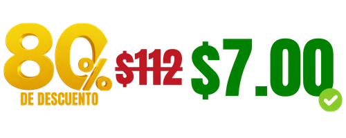 Por todo este contenido NO TIENES QUE PAGAR 112 DÓLARES, aunque sería un precio totalmente justo por todas las herramientas que vas a obtener para dejar de empezar y abandonar, y comenzar a cumplir lo que te prometes.Pero si hoy decides tomar acción, voy a darte un 80% de DESCUENTO, quedándote en tan solo 7 DÓLARES.