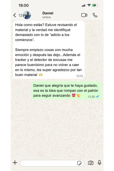 Si después de hacerlo sientes que no te ayudó a entender por qué siempre empiezas pero abandonas, solo escríbenos y te devolvemos el 100% de tu dinero.